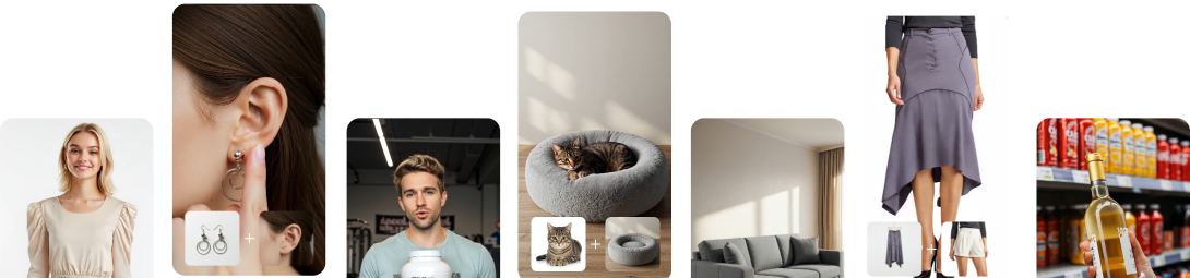 De mockups profissionais a anúncios em vídeo de alta conversão — nossa IA transforma suas imagens de produto em conteúdo de marketing poderoso em segundos. Sem necessidade de habilidades em design. Sem edição necessária.